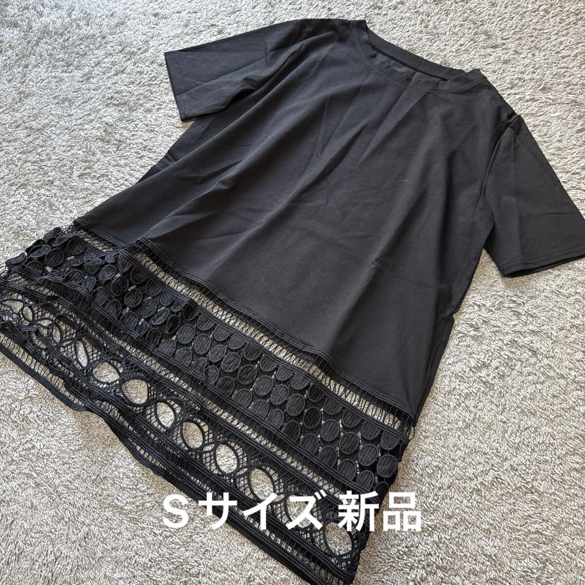 - provador 裾レース半袖チュニック黒S★ゆうパケット配送可能★新品30