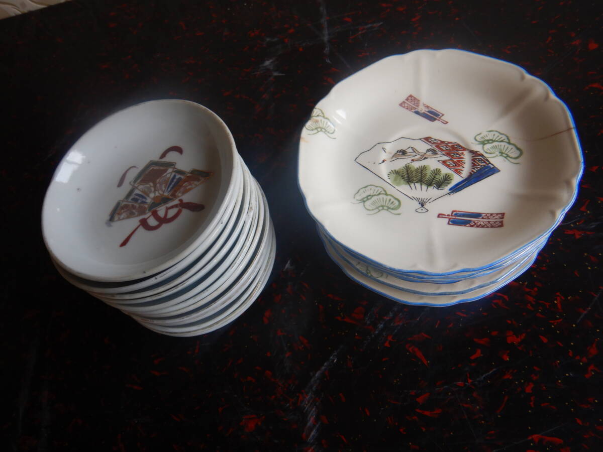 - 小皿 20枚セット 11H2.2CM 12枚 14.5H2CM 8枚 扇 扇子柄 昭和レトロ 岩手県北旧家
