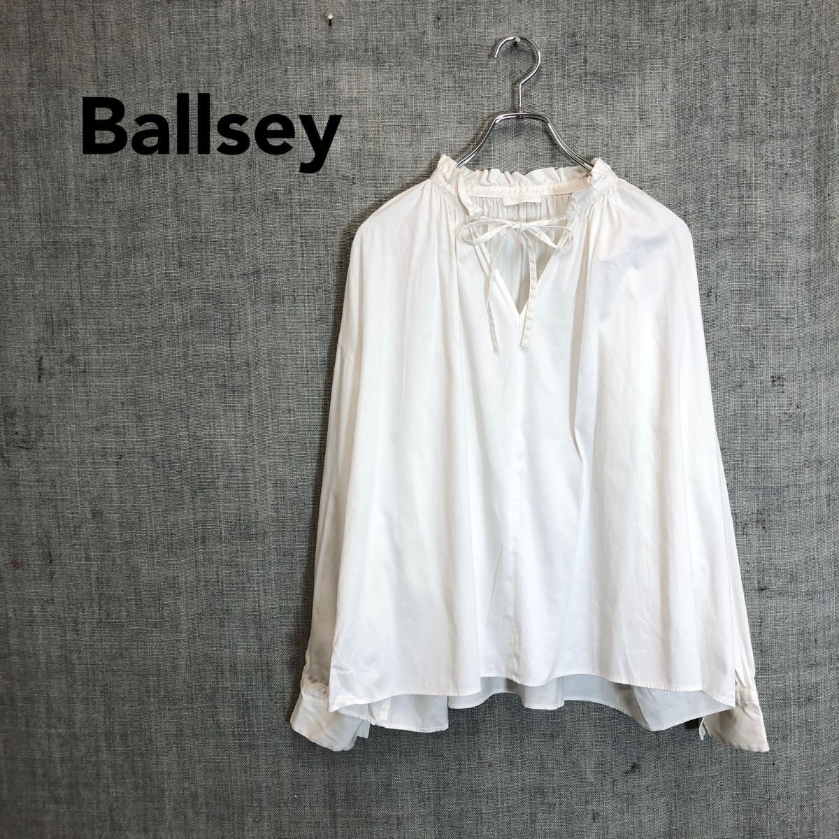 > 2K1897-Y◆日本製◆Ballsey ボールジィ Vネックフリルカラーシャツ ワイドシルエット ネックリボン レディース ◆size36 クリーム系 綿
