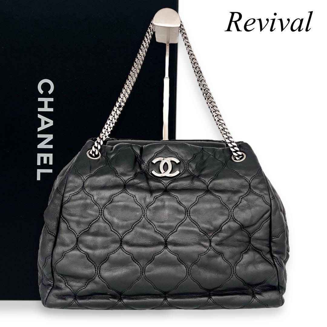 - 【美品】シャネル ラムスキン チェーントートバッグ 黒 ブラック 551
