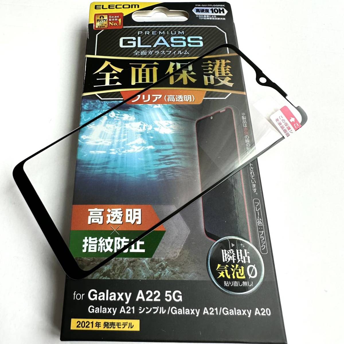 - Galaxy A22 5G(SC-56B)/A21/A20用フルカバーガラスフィルム★気泡ゼロ★高透明★硬度10H★日本製ガラス★ブラックフレーム★ELECOM