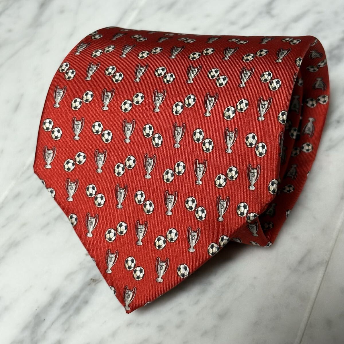 - 【美品】 999円~ Ferragamo ネクタイ レッド サッカーボール トロフィー (R2)