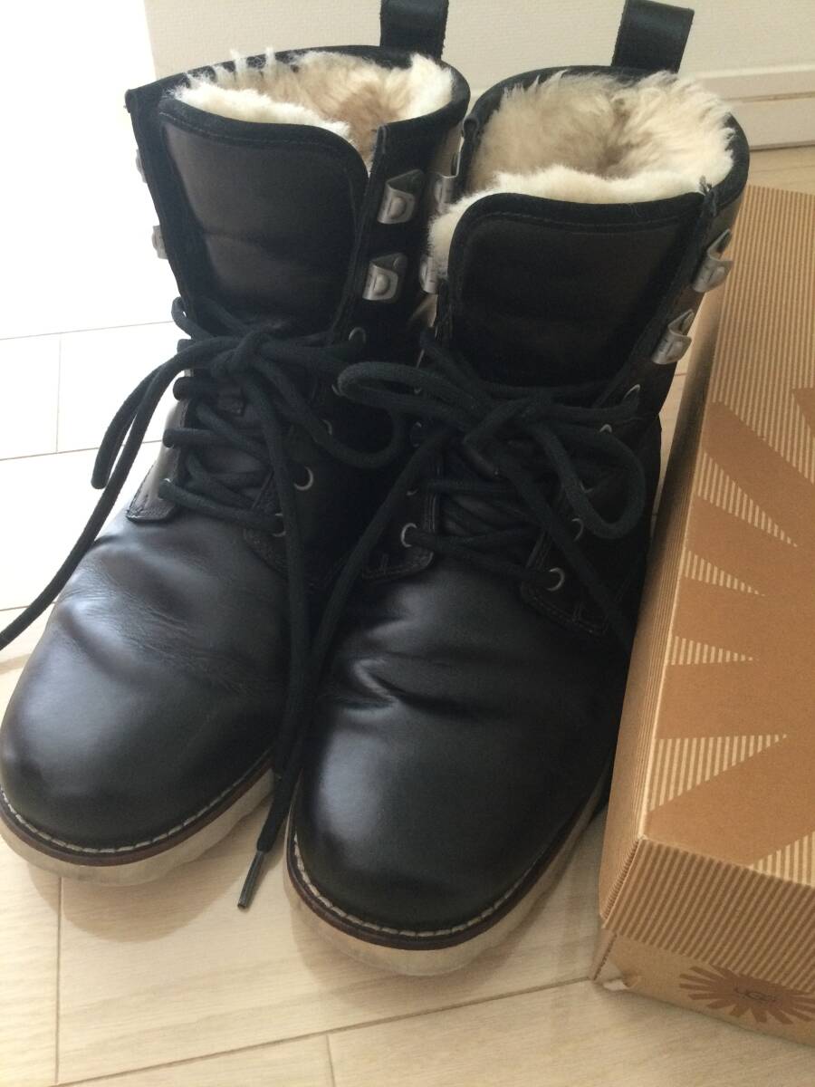 - 中古品 アグ ブーツ メンズ UGG 27cm ムートン 黒 箱付 本物 紐付き 極暖 ハイカットブーツ 銀座