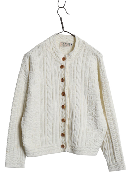 > 80s USA製 エルエルビーン フィッシャーマン ニット カーディガン レディース M ヴィンテージ 前開き 羽織り コットン セーター ナチュラル