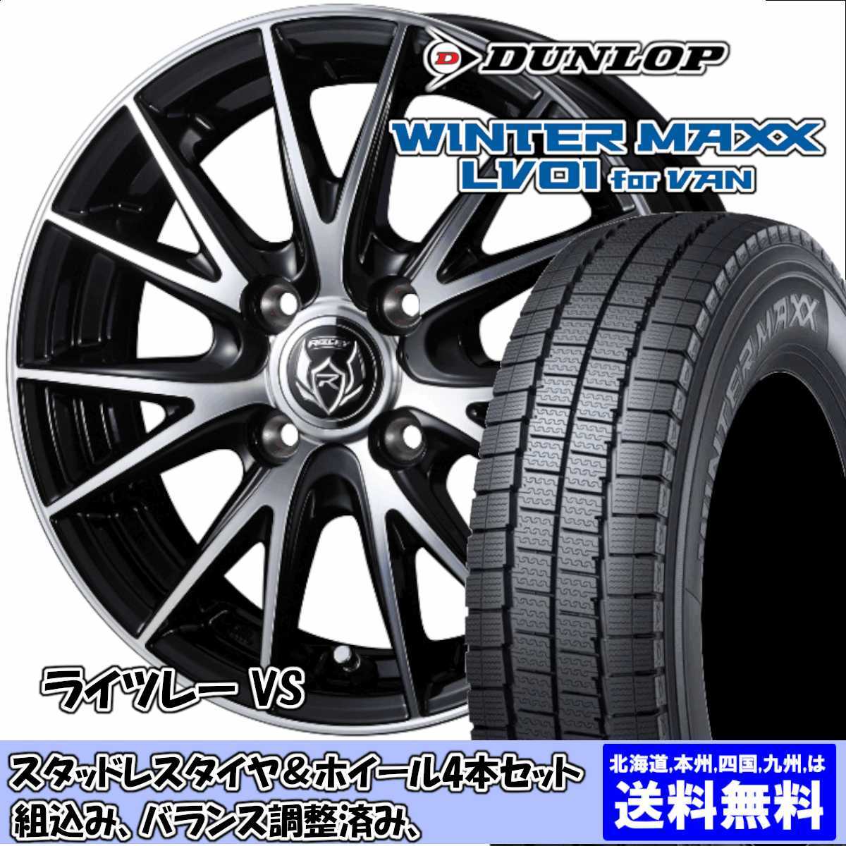 - スタッドレスセット エブリィ DA64V ウィンターマックス LV01 145/80R12 80/78N ライツレー VS BKP 2024年以降製造