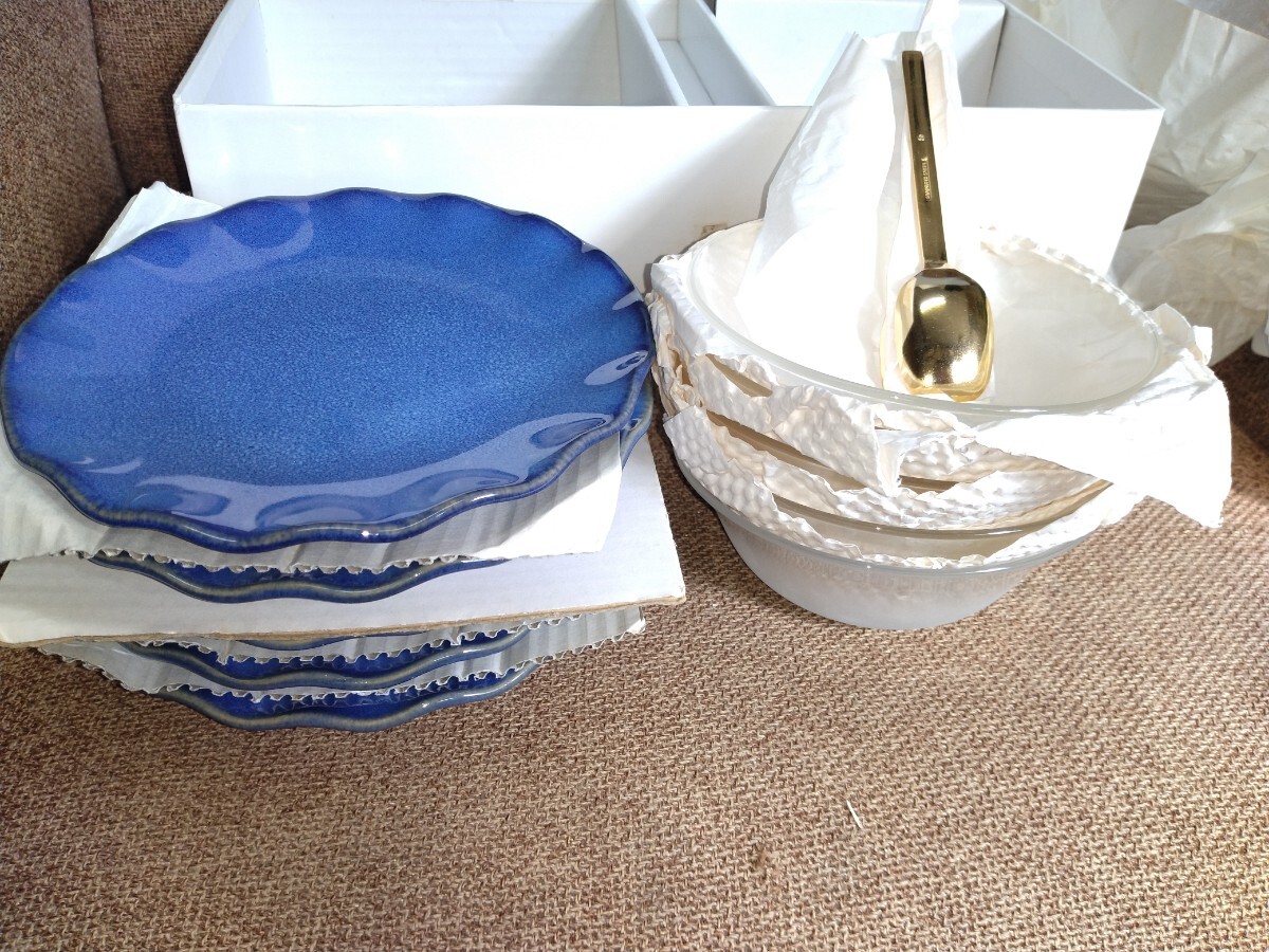 - K396【未使用】 均窯デザート皿 鉢 スプーンセット 5客 NIPPON CRAFT(ニッポンクラフト)