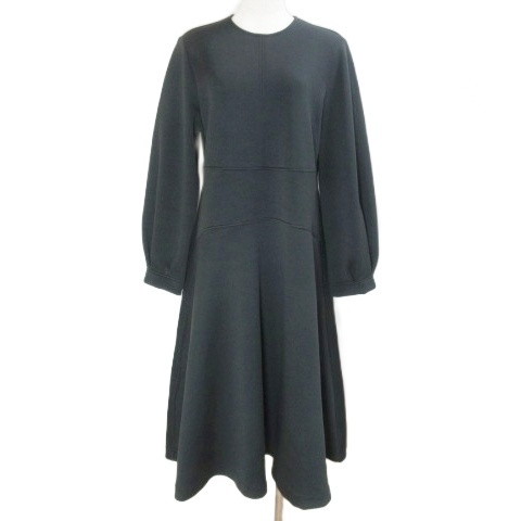 - シップス カランシエル QUARANCIEL 24AW ダブルジャージー フレア ミディ ワンピース 長袖 ウォッシャブル フリーサイズ 黒 ブラック X