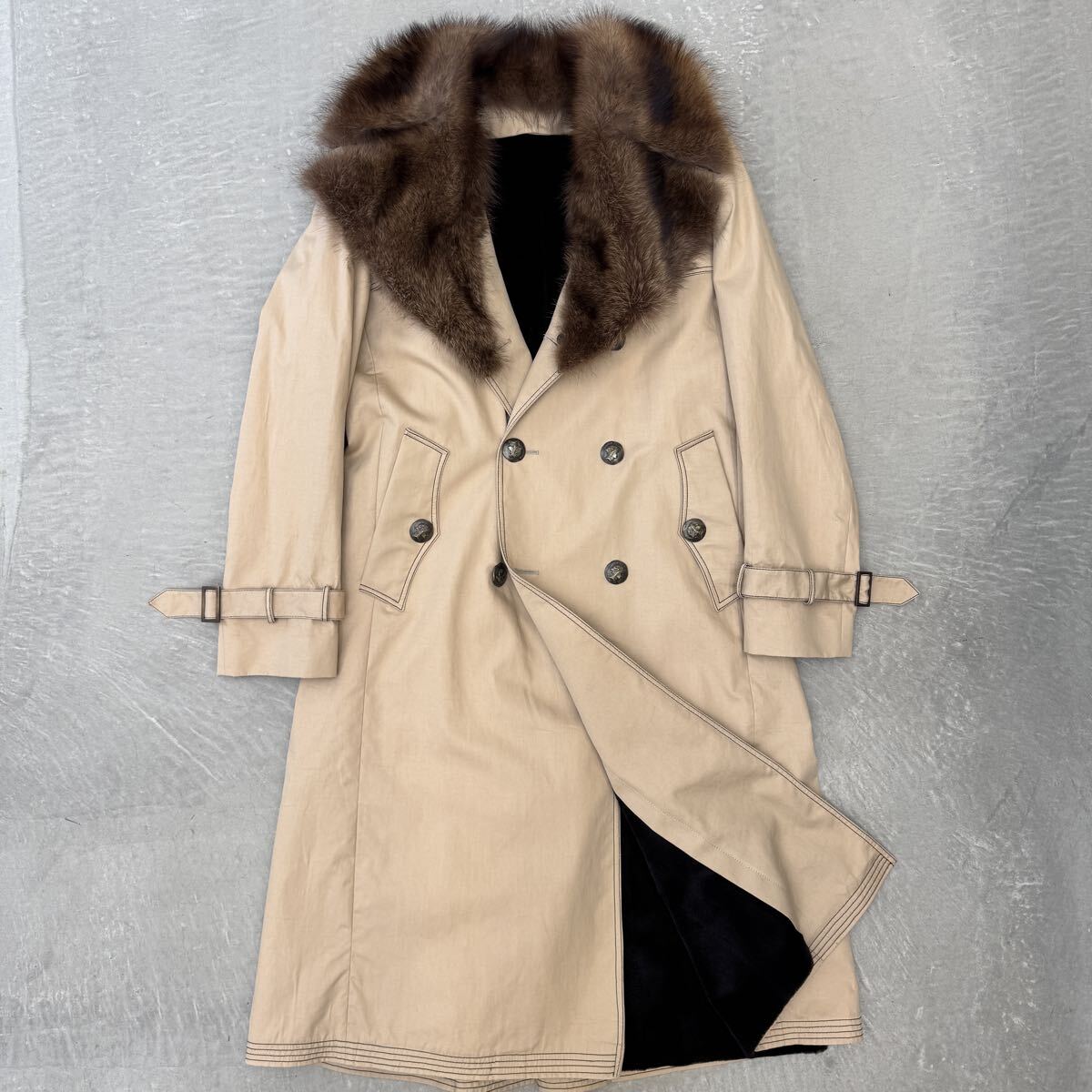 > 【美品】 フェンディ◆トレンチコート◆コットン ミンク 毛皮 ファー ベージュ 48 FENDI コート トレンチ コットントレンチコート