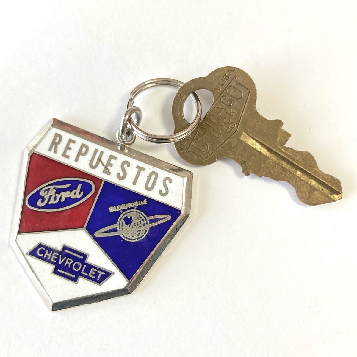 - 246 当時物1960年代アメリカ雑貨企業物旧車ヴィンテージ輸出用エンブレムプレート金属製☆キーホルダー真鍮鍵キーセット カギ 鍵ノベルティ