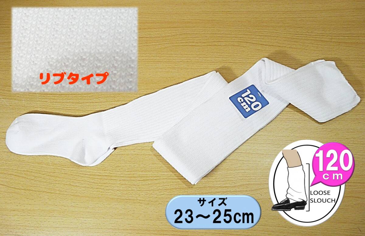 - 【レッグウェア★未使用品】白 ロング ルーズソックス◆リブタイプ◆23-25cm◆120cm丈◆平成ギャル◆