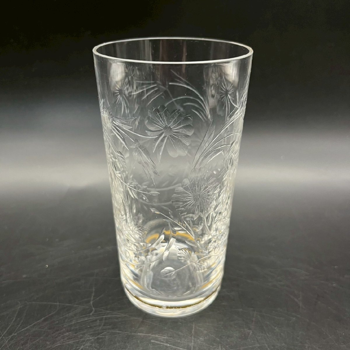 - SW0807-2‐3 ST LOUIS サンルイ ストレート グラス コップ カップ 花柄 花模様 金彩 ガラス クリスタル 食器 高さ13㎝ 口径6㎝ 60サイズ