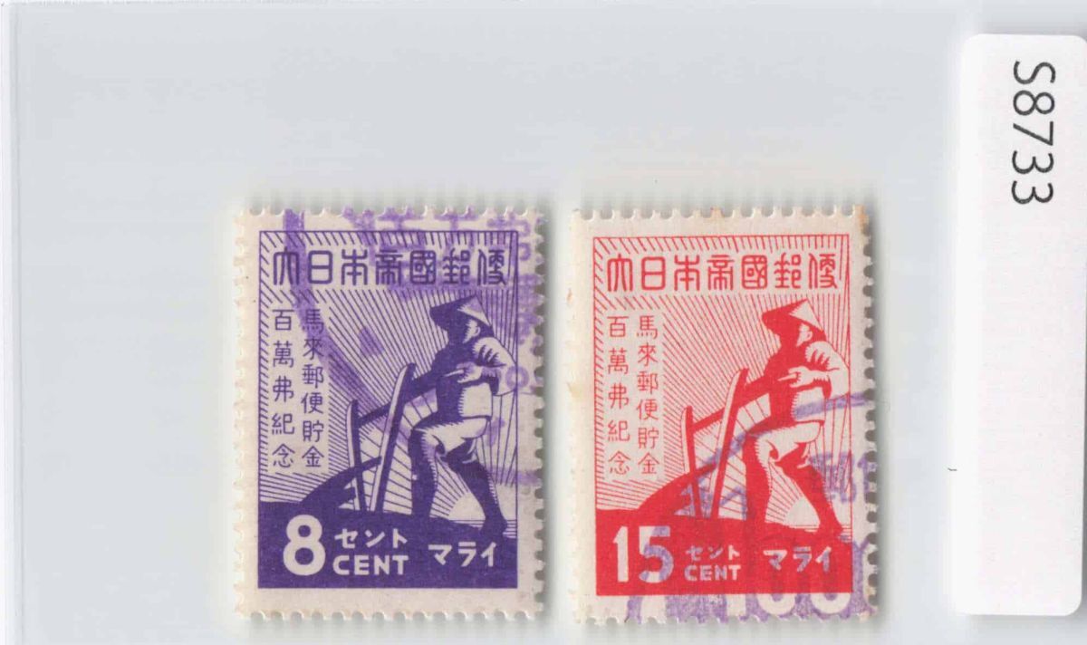 > *[令]日本占領下英領マラヤ切手 8・15セント 南方占領地,イギリス領,マレーシア,シンガポール Japanese Occupation Stamp[S8733]7q5