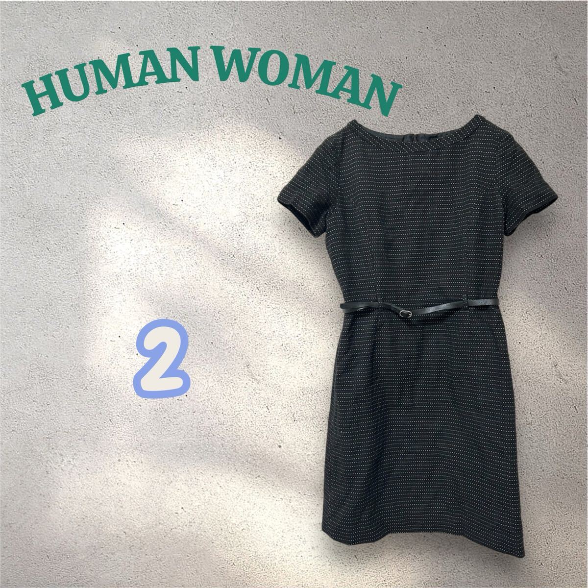 - HUMAN WOMAN ヒューマンウーマン ドット柄 半袖ひざ丈ワンピース 2