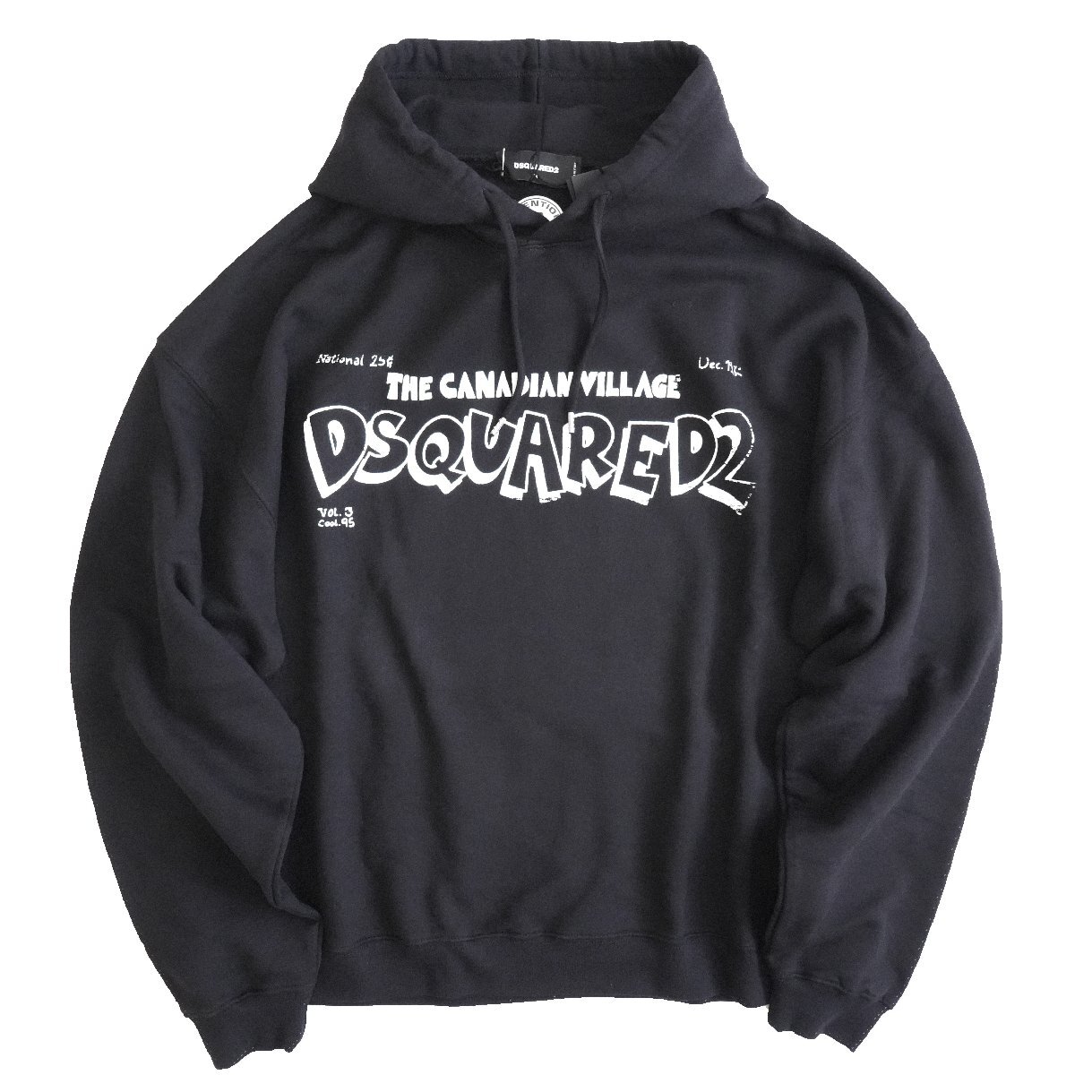 > 2024◆新品◆ディースクエアード2◆差をつける!リッチな貫禄 黒パーカ DSQUARED2 デカロゴ スウェット パーカー XL◆オーバーサイズフ-ディ