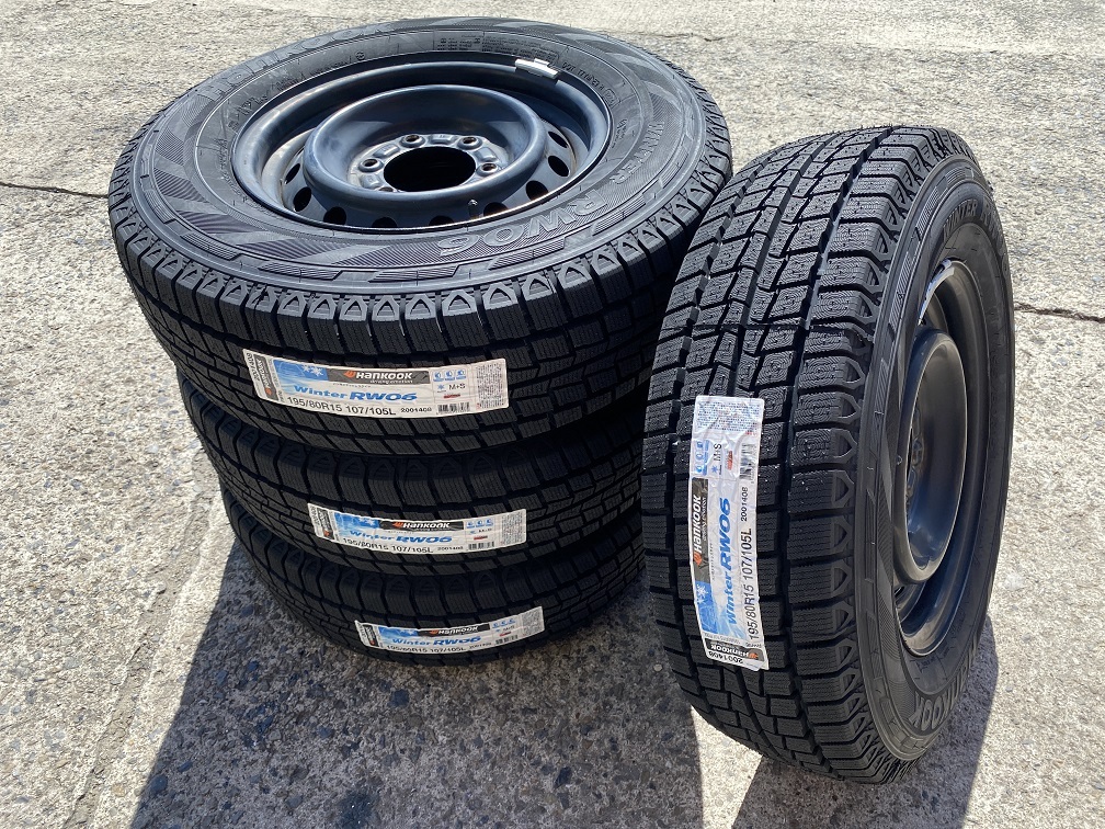 - 【2025年製 新品スタッドレス付き】200系ハイエース純正 195/80R15 107/105L ハンコック RW06 タイヤホイール4本セット