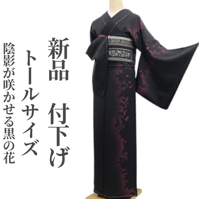 - tomihisa 新品 着物 正絹 仕付け糸付 トールサイズ”陰影が咲かせる、黒の花”付下げ 6724
