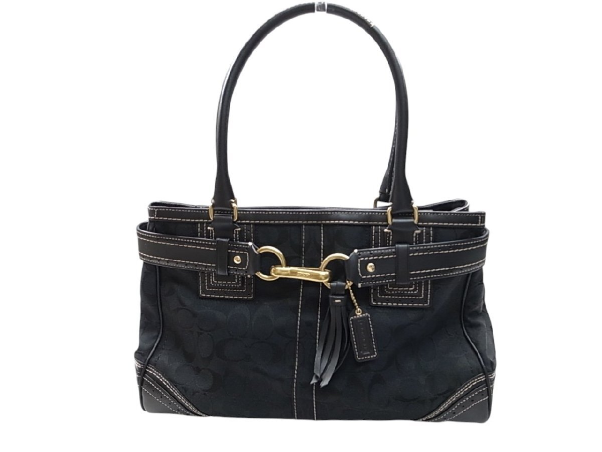 - 美品☆【COACH】コーチ シグネチャー キャンバス×レザー タッセル トートバッグ ショルダー F10508 ブラック レディース