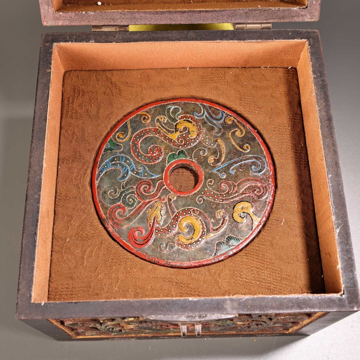 - 永し 清時代 宮廷御製 和田玉 彩絵 玉壁 漆盒 極細工 置物擺件 古美術品 時代物 古董品 収集 旧家蔵出 中国唐物 A11