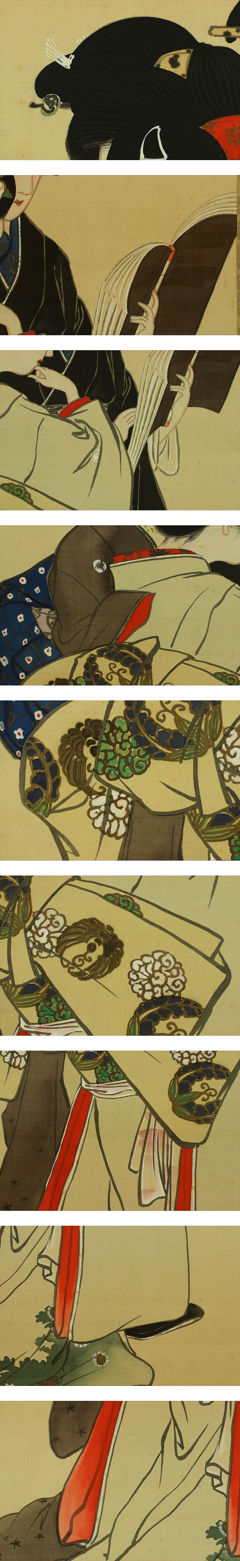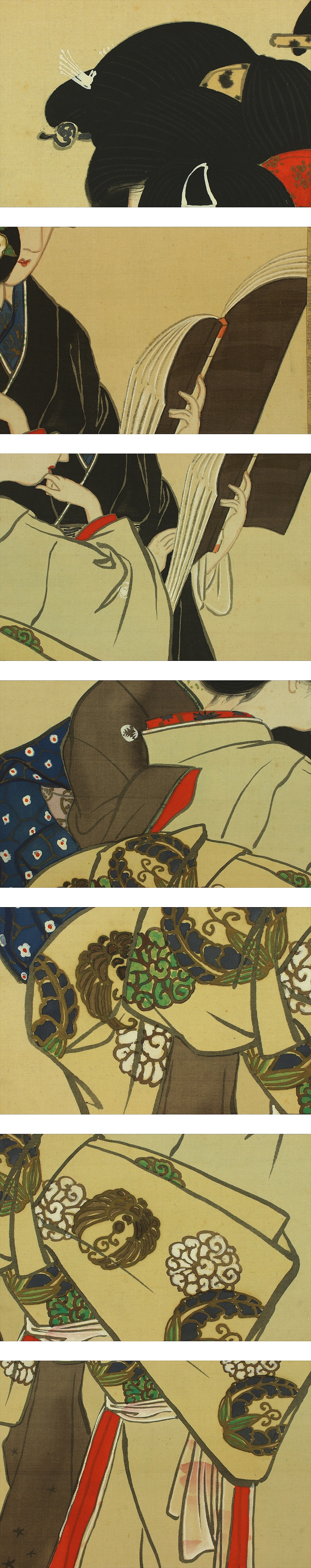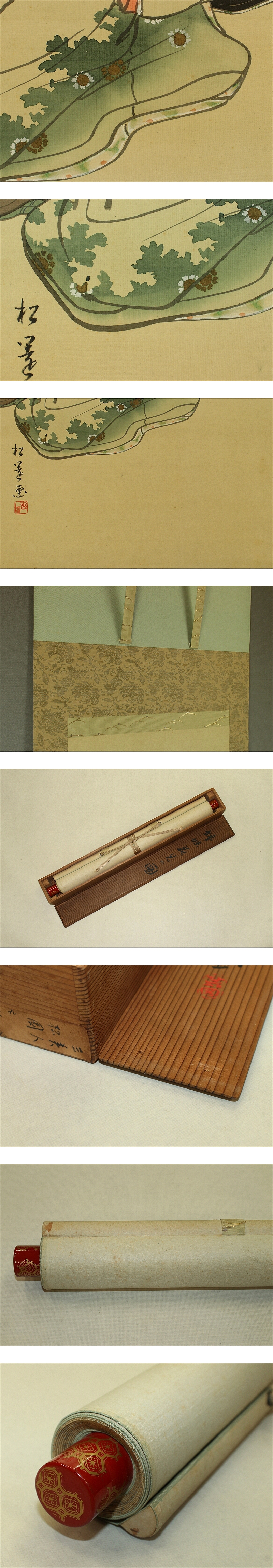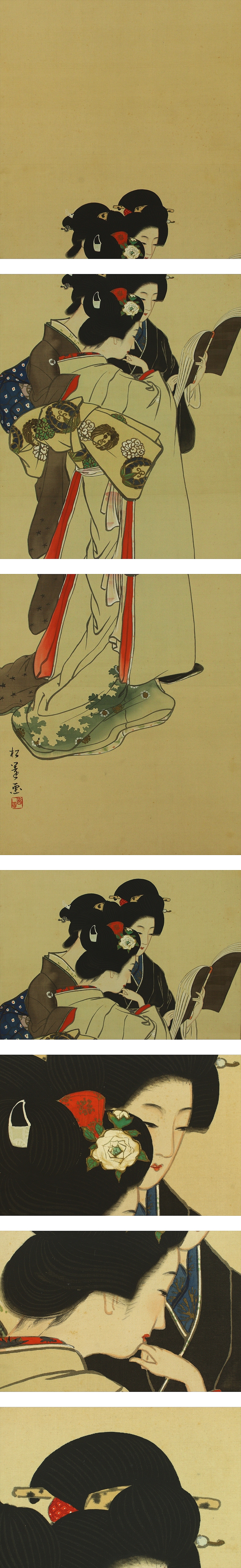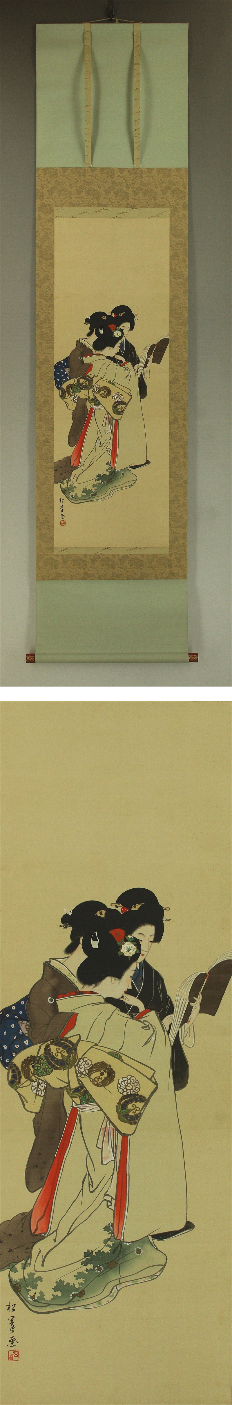 - 【模写】上村松園【姉妹三人】◆絹本◆合箱◆掛軸 r06014