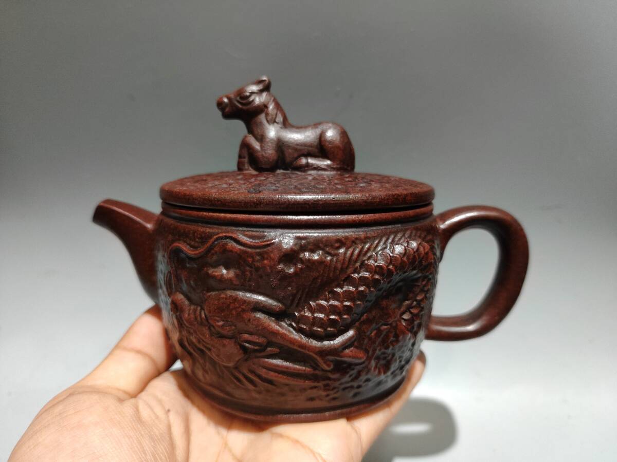 - 【仁】『 紫砂壺・龍馬精神壺・顧景舟款・紅泥・茶具・茶道品』極細工 古董品 中国古玩 古美術 古美味 時代物 旧家蔵出