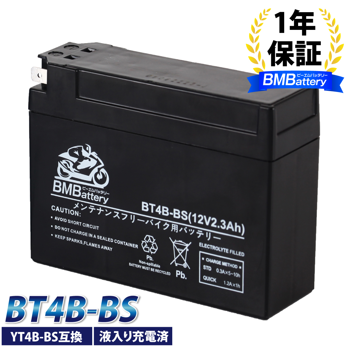 - BT4B-BS BMバッテリー 充電 液注入済み 高品質バイク バッテリー(互換:YT4B-BS/CT4B-5/YT4B-5/GT4B-BS/FT4B-5) 1年保証