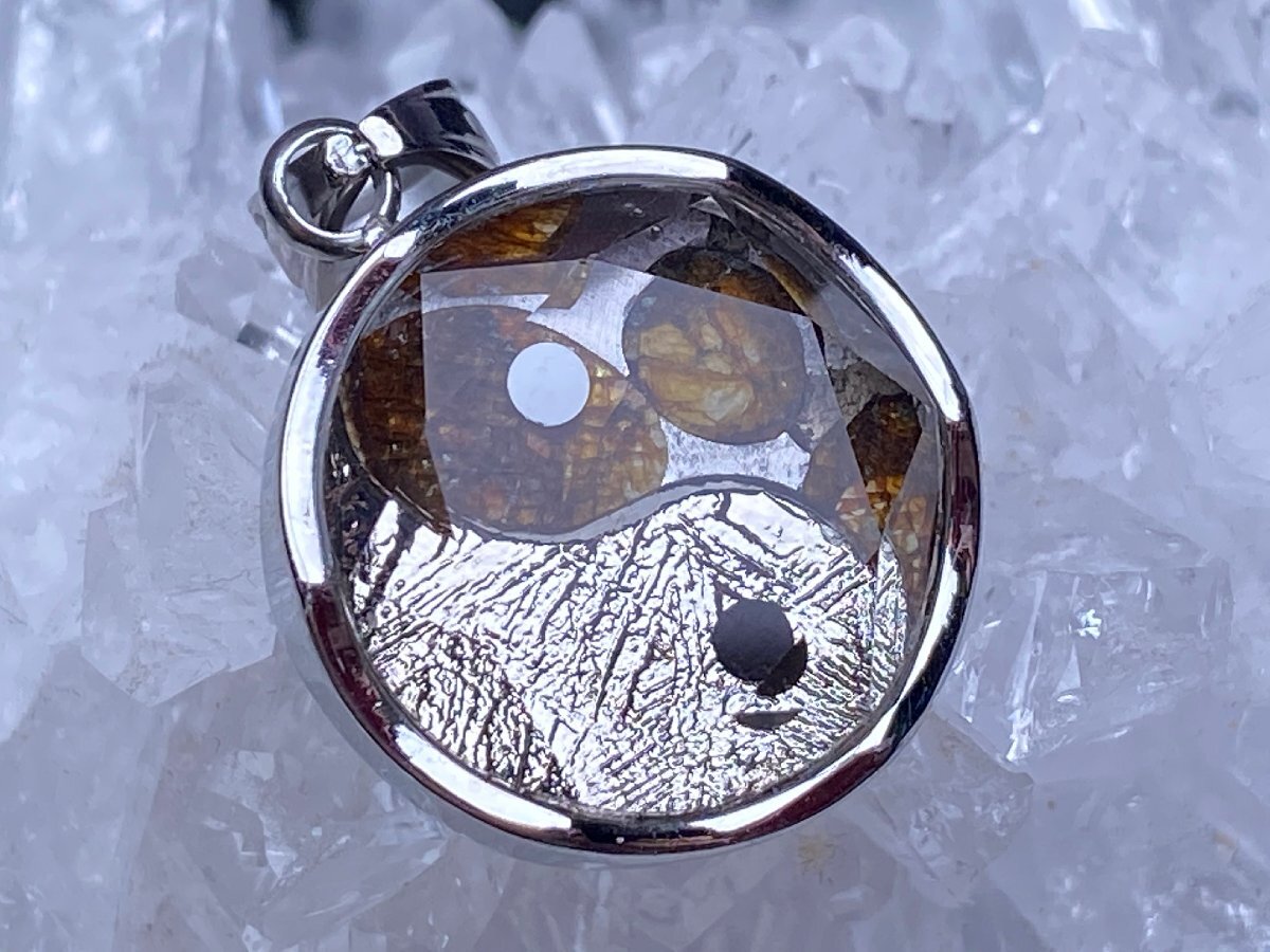 - 即決 0616k480 月に近い★【ジェパラメテオライト&ギベオン隕石】★ 太極ペンダント 15.5x7.5mm(新品)
