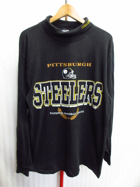 > USA製 ピッツバーグ・スティーラーズ 90sビンテージ ハイネック長袖Tシャツ メンズL XL 黒 アメリカ製アメフトジャージ カットソー09122