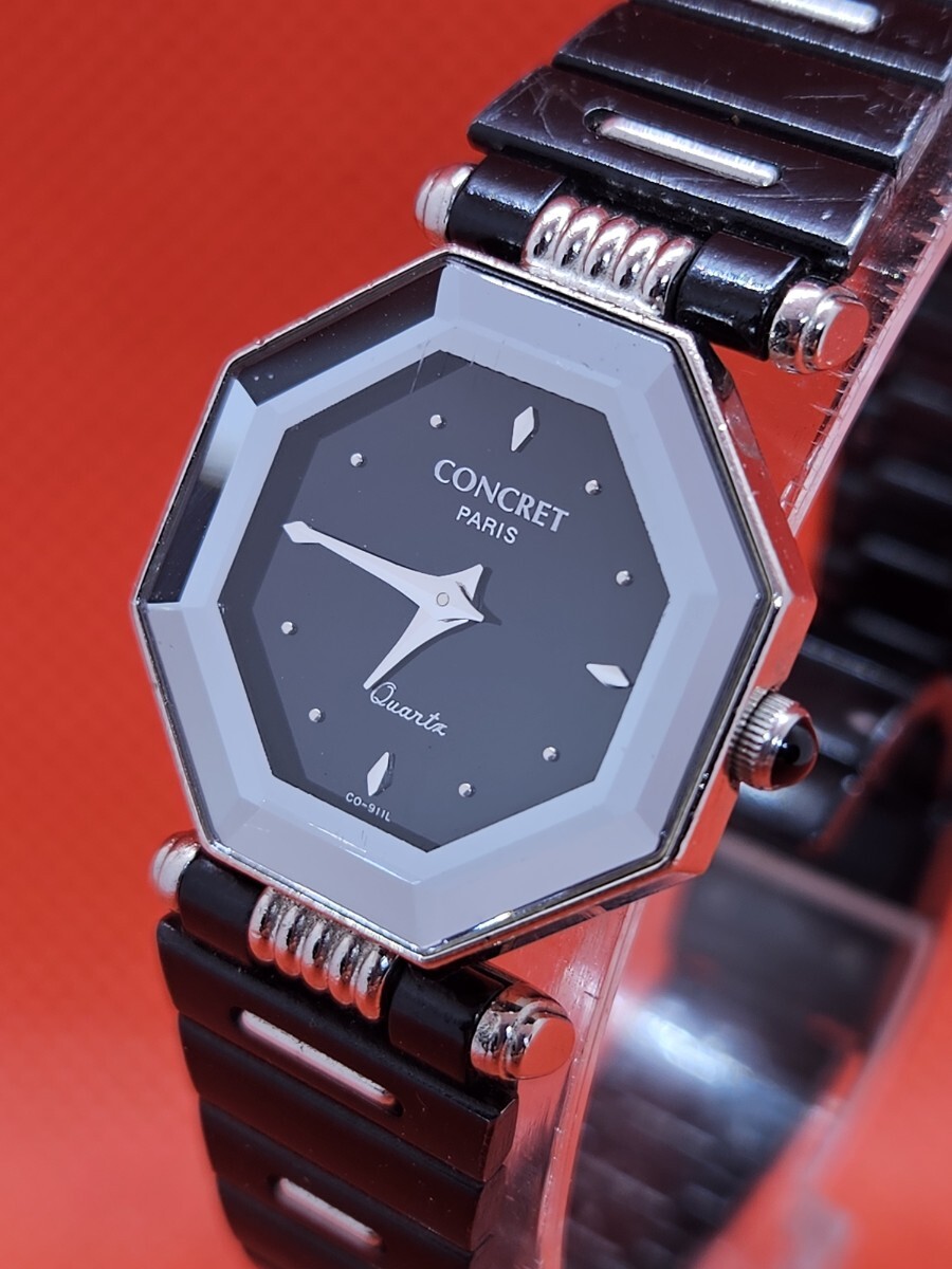 - 稼働品 良品 CONCERT 八角形 ブラック レディース腕時計 電池交換済み G3008