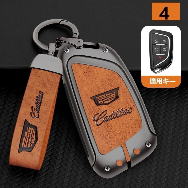 - キャデラック スマートキーケース キーカバー TPU キーホルダー 車専用 傷 防止 鍵を保護 深錆色/オレンジ ☆1-4番