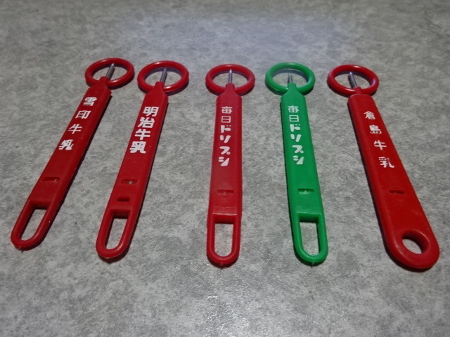 - 牛乳瓶栓抜き棒・まとめて5点【雪印牛乳・明治牛乳・毎日ドリプシ(赤)・毎日ドリプシ(緑)・倉島牛乳】