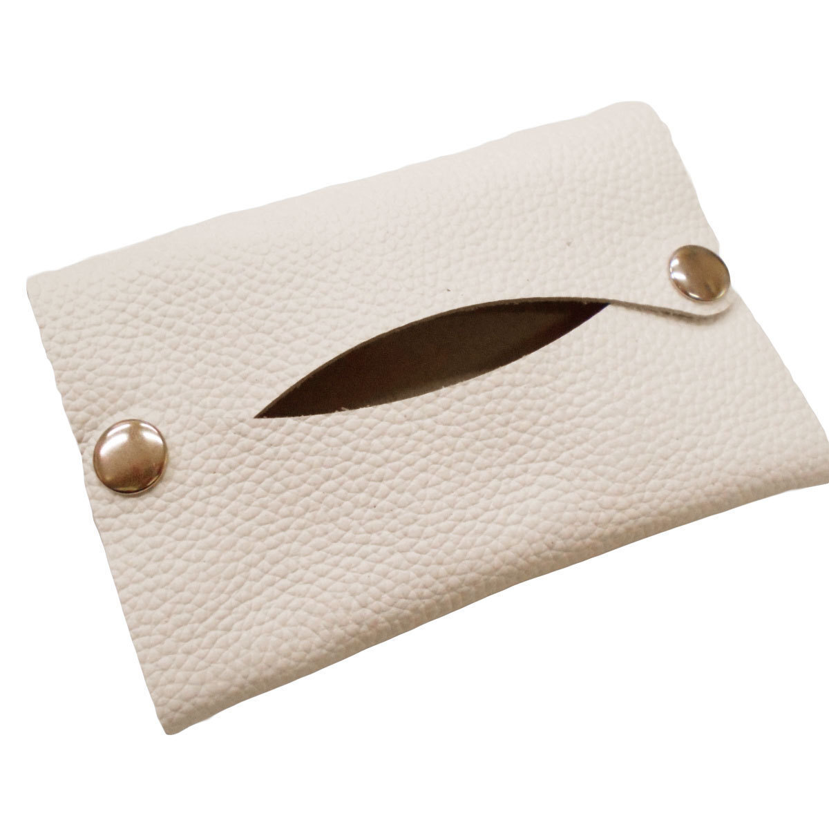 - ポケットティッシュ ケース カバー/ホワイト/無地 本革 レザー 革 メンズ レディース