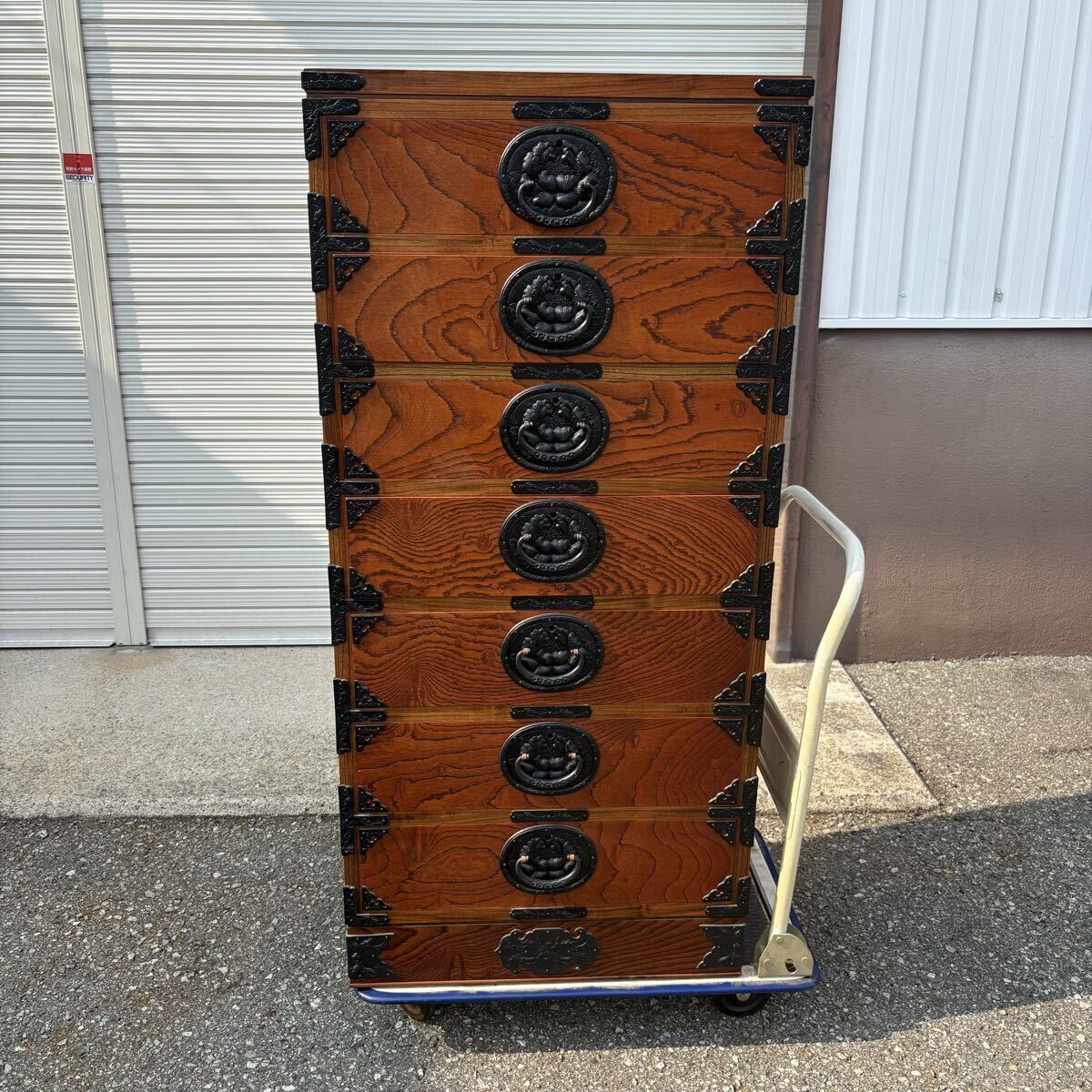 - 岩谷堂箪笥 欅 南部鉄器金具 整理箪笥 漆塗り 衣装タンス 伝統工芸 鍵なし 7段 em-F1
