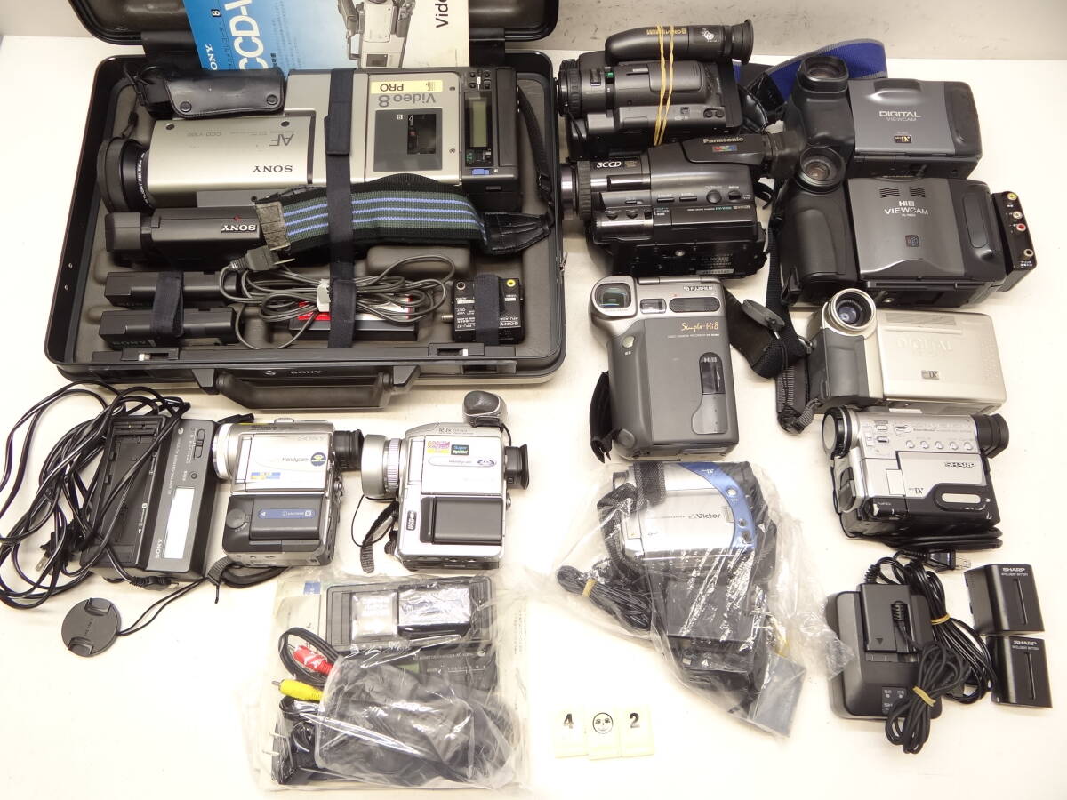 - M402E 大量11台 ビデオカメラ デジタル 8mm 3CCD 等 SONY CCD-V100 PC100 PC110 SHARP VL-EX3 PANASONIC Kyocera FUJIFILM Victor ジャンク
