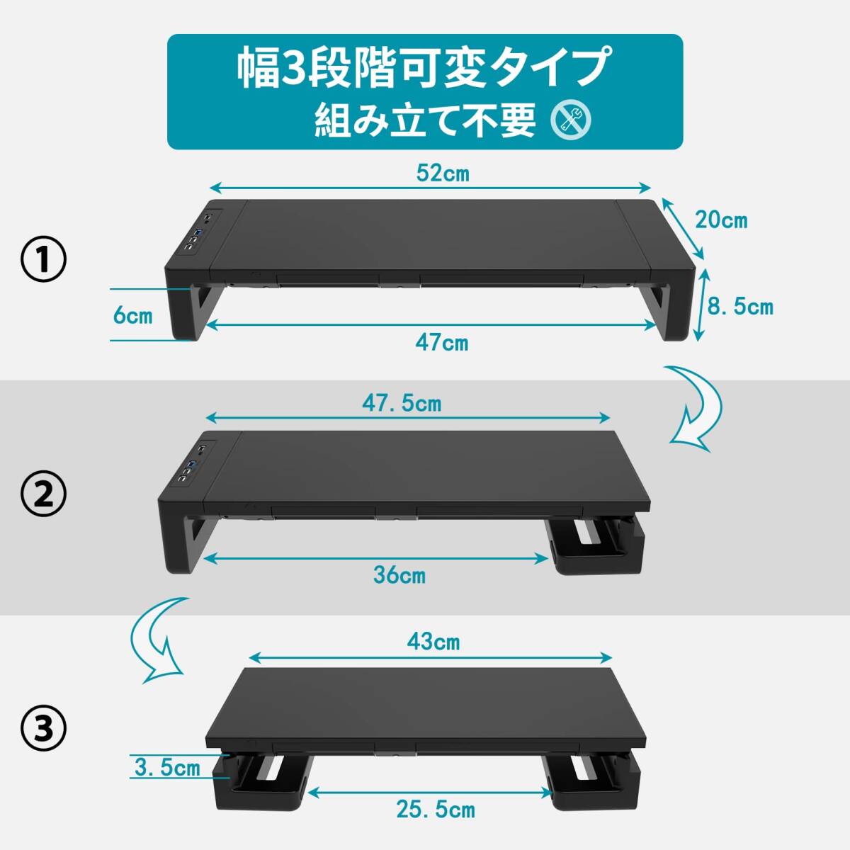 - モニター台 USB2.0/3.0データ転送 USB/TYPE-C充電