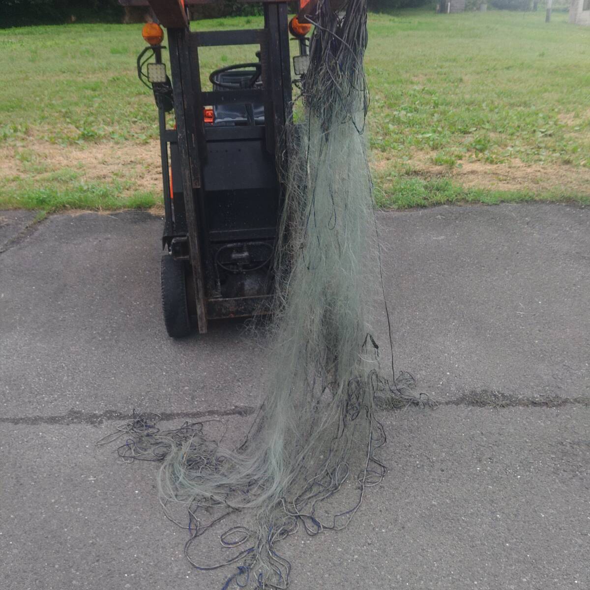 - 【中古】漁網 刺し網 完成品 刺網 1反 約4寸 長さ50m(仕立て前160m) 高さ2.42m 約3号 灰色 漁具 漁業 原反 1個 浮力10g/1m 錘25g/1m
