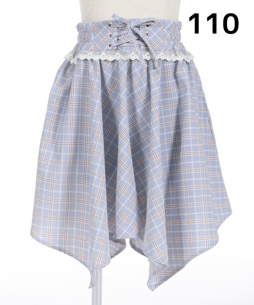 > 新品タグ付き axes femme kids アクシーズファムキッズ チェック柄イレヘムスカパン スカートパンツ ブルー 110 子ども服 女の子
