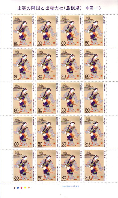 - 「出雲の阿国と出雲大社(島根県)」の記念切手です