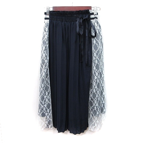 > 未使用品 アールエヌエー RNA プリーツスカート ロング 切替 レース M 紺 ネイビー 白 ホワイト /YI レディース