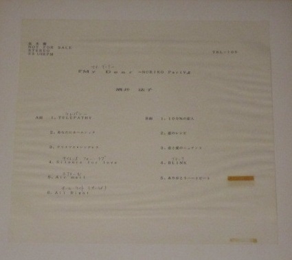 - 激レア!ゆうせんプロモLP 滅多に出品されないアナログレコードLP 酒井法子 My Dear マイ・ディア NORIKO Part V