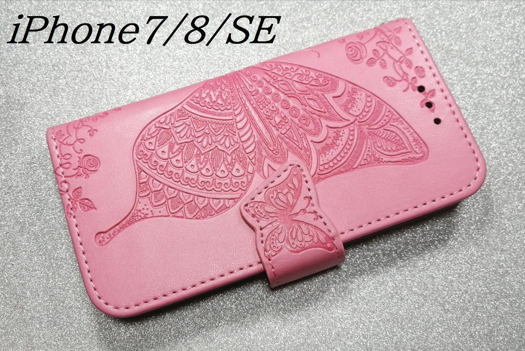 > 手帳型 iPhone6/7/8/SE2/SE3用 ケース 蝶 花柄 ピンク