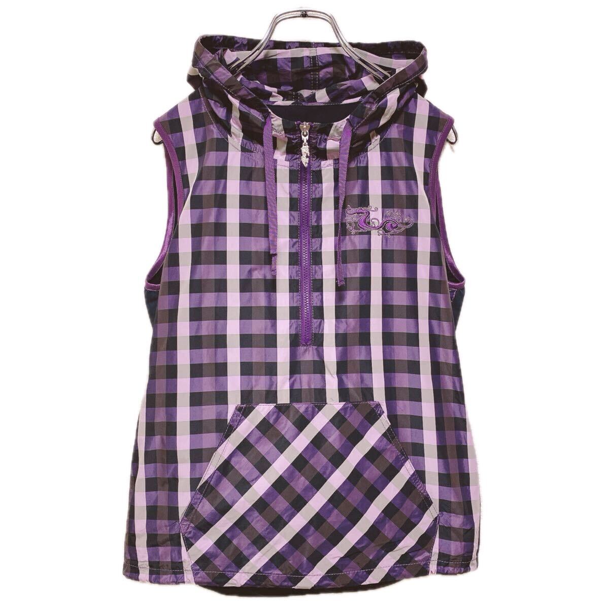 - DANCE WITH DRAGON■チェック柄 ハーフジップ ナイロン フード ベスト■レディース 2■ダンスウィズドラゴン ゴルフ ウェア