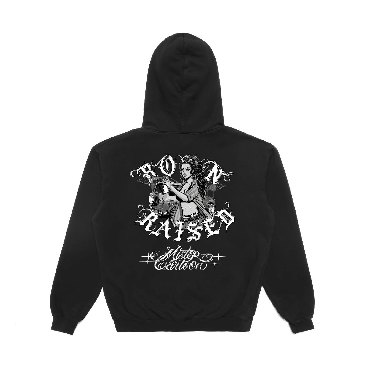 - MISTER CARTOON BORN RAISED HOMEGIRL ROCKER HOODIE BLACK L ミスターカートゥーン ボーンアンドレイズド ホームガール ロッカー パーカー