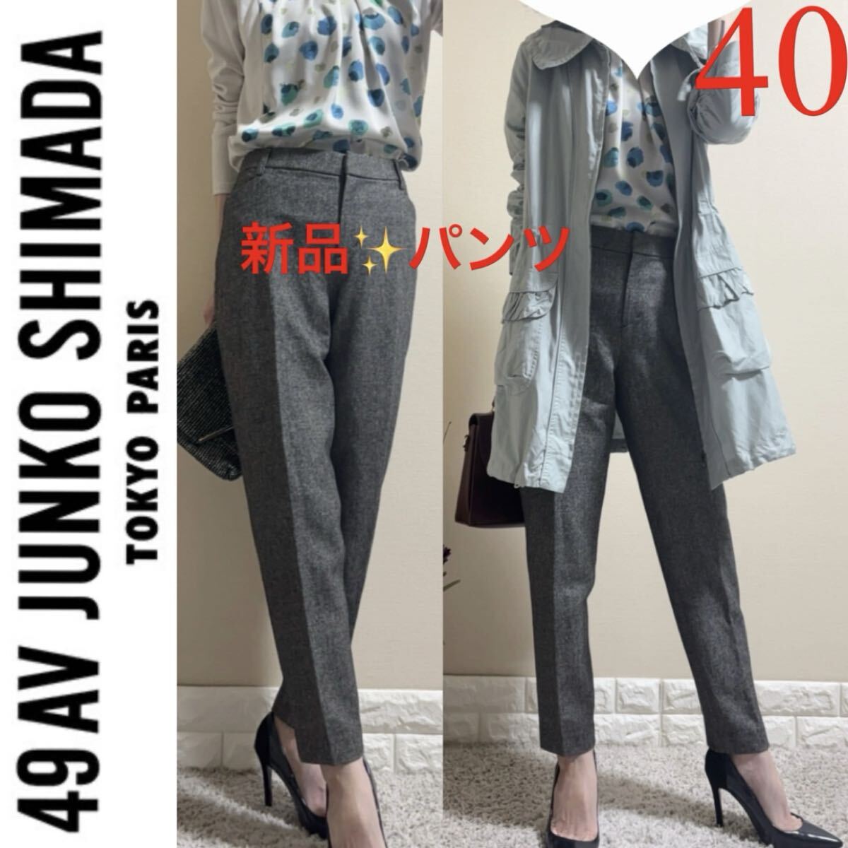 - 超得!新品!49AV JUNKO SHIMADA ジュンコシマダ 49AV.junko shimada 定価33,000円 上質 洗える ツイードパンツ 40 L 黒系 秋冬