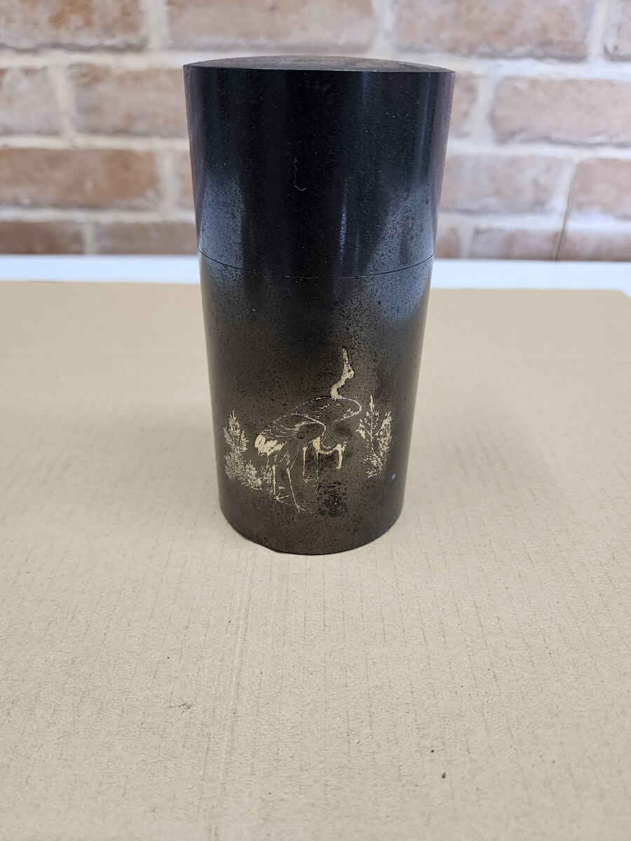 - 福岡県 茶筒 銅器 銅製 鶴 アンティーク 中古品 長期保管品 現状