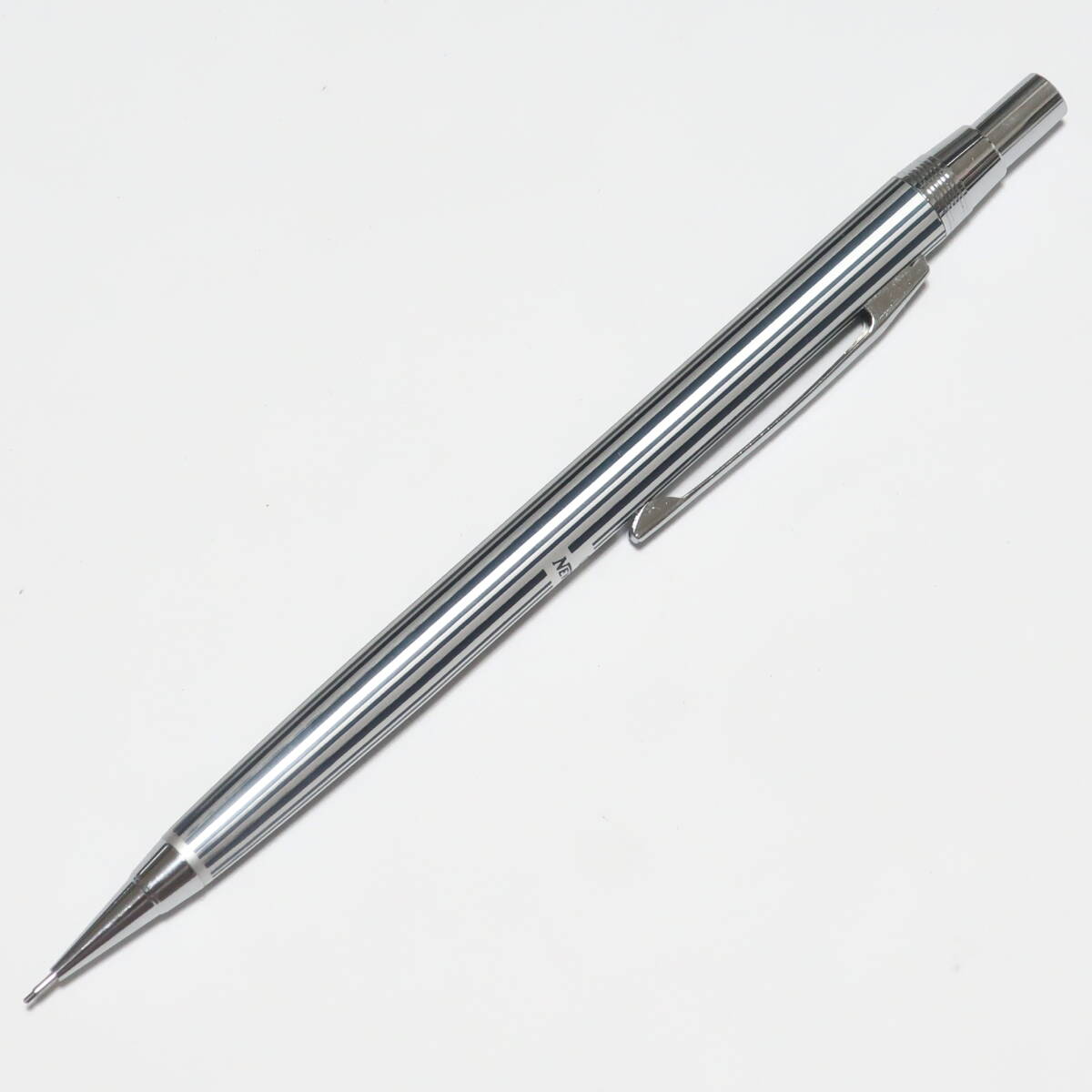 - ニューマン シャープペンシル 0.5 ストライプ ノック式 シルバー ブラック シャーペン NEWMAN 銀 黒 縞柄 昭和 レトロ 日本 Japan