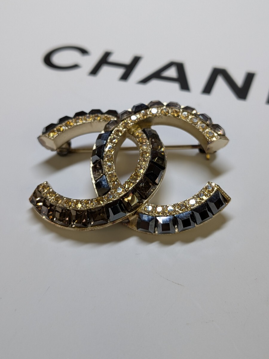 - CHANEL シャネル ココマーク ラインストーン ブローチ ブラック/ゴールド 14P
