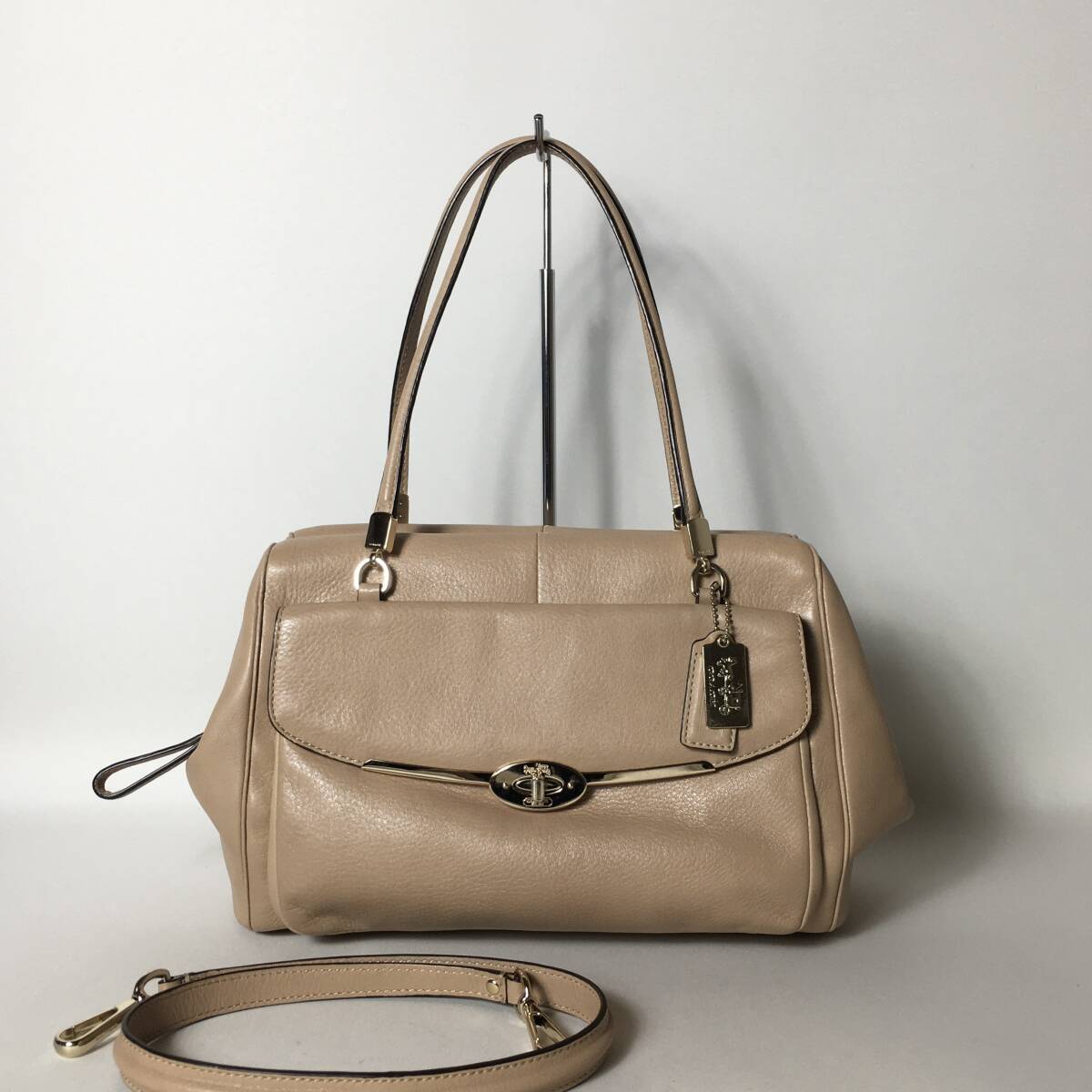 - 79B63|美品|コーチ 2WAYバッグ レザー ベージュ ターンロック