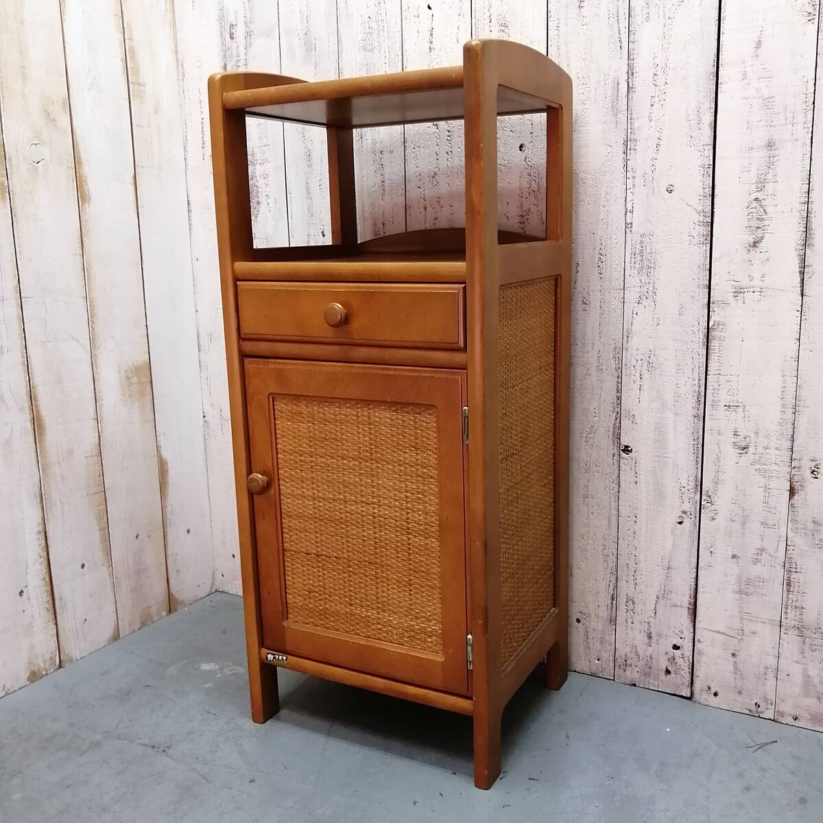 > ●25091711v karimoku オールドカリモク 電話台 キャビネット ラタン扉 籐 FAX台 飾り台 花台 収納 ナイトテーブル