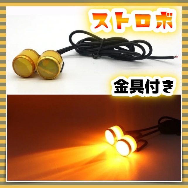 > LED ストロボ ライト 2球セット イエロー アンバー 黄色 フラッシュ 点滅 フォグ テール マーカー バックランプ 車 バイク 除雪機 12V 汎用