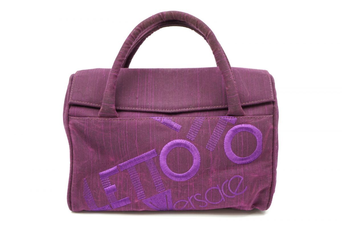 - ジャンニ ヴェルサーチェ ヴィンテージ ハンドバッグ トート 刺繍 ロゴ キャンバス 紫 パープル GIANNI VERSACE 3663h